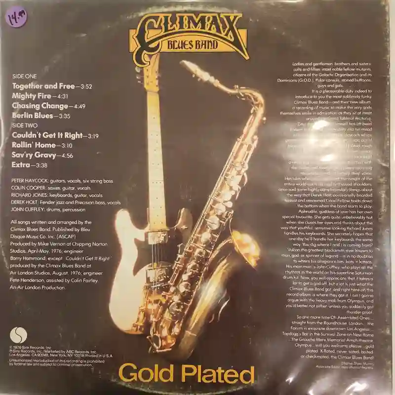 This is the ninth album by the British blues-rock band Climax Blues Band, which was one of the many bands that came into existence during the mid to late 1960s British Blues revival, pioneered by Alexis Korner and John Mayall. The band plays a great selection of self-penned material, which mixes blues, rock and even soul, brilliantly executed with plenty of heartbreaking guitar and sax solos, as expected. This album includes the band’s greatest commercially successful single “Couldn’t Get It Right.” It’s considered one of the classics of the British blues-rock releases.