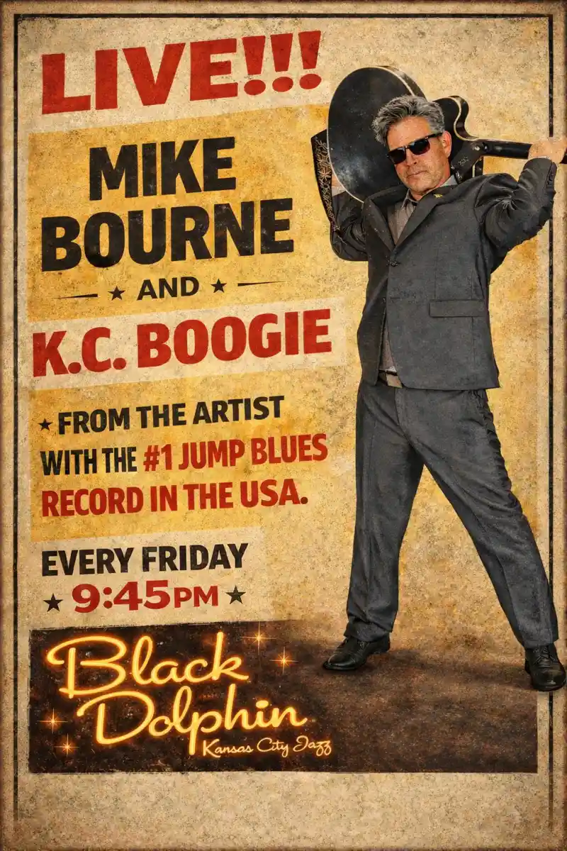 Mike Bourne & KC Boogie are officially the FRIDAY NIGHT BAND at the BLACK DOLPHIN, following the incredible Tim Whitmer. Kansas City classic styles like Jay McShann and Big Joe Turner are alive again in this incredible room as we put original lyrics to the music that not only defined the Kansas City Sound but also launched rock and roll! They are hot hot HOT!